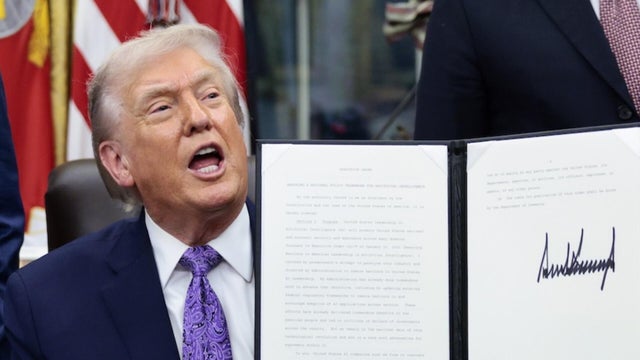 President Trump signed an executive order Thursday that aims to prevent states from enforcing their own regulations on artificial intelligence. CBS News chief White House correspondent Nancy Cordes reports.